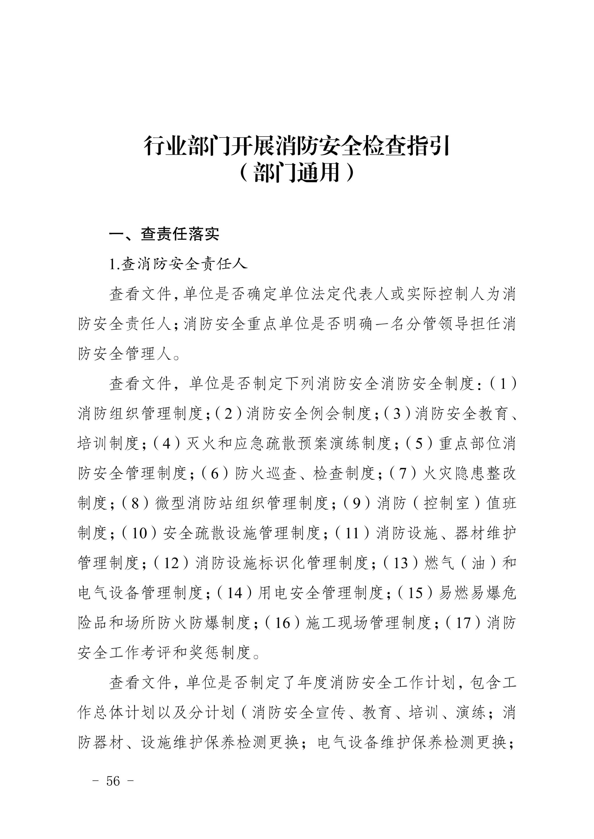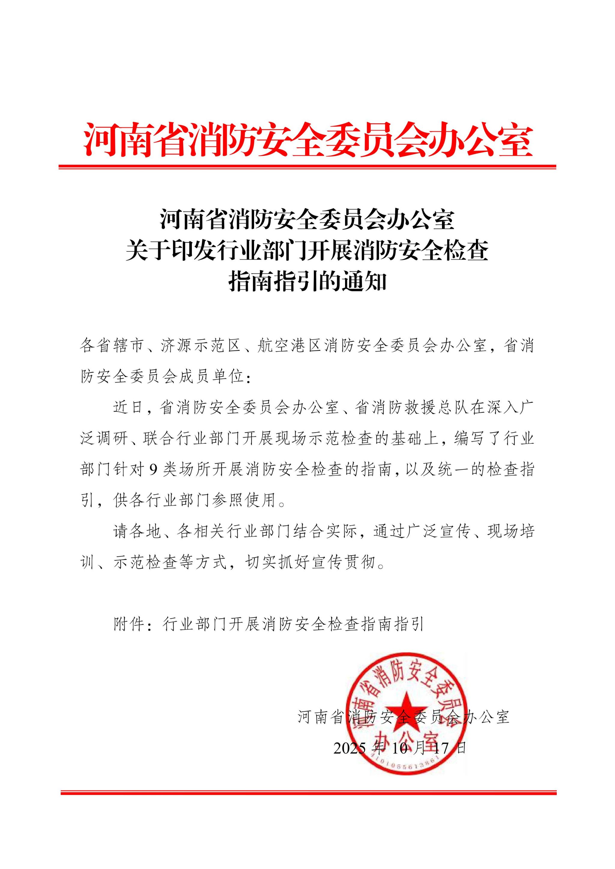 河南省消防安全委员会办公室关于印发行业部门开展消防安全检查指南指引的通知
